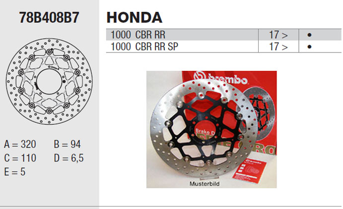 For Honda (measure: 320 / 94 / 110 / 5-holes). See picture / list!